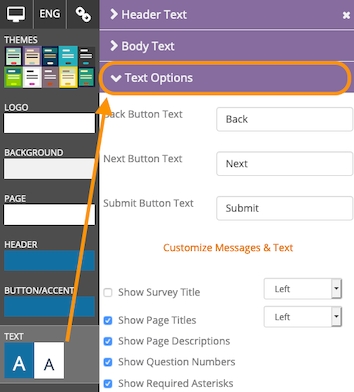 Click Text Options where you can show or hide Titles, Descriptions, and Question Numbers.