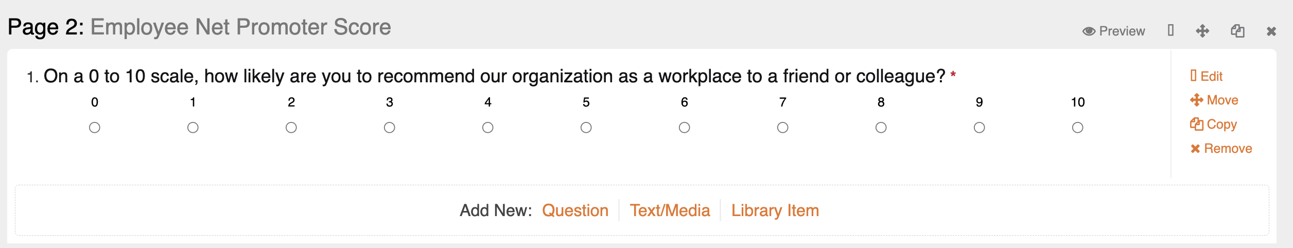 "On a scale of 0 to 10, how likely are you to recommend \[Organization Name] as a place to work?"