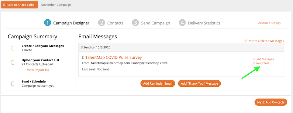 This will bring you to the Email Campaign Designer. Click Send Test.