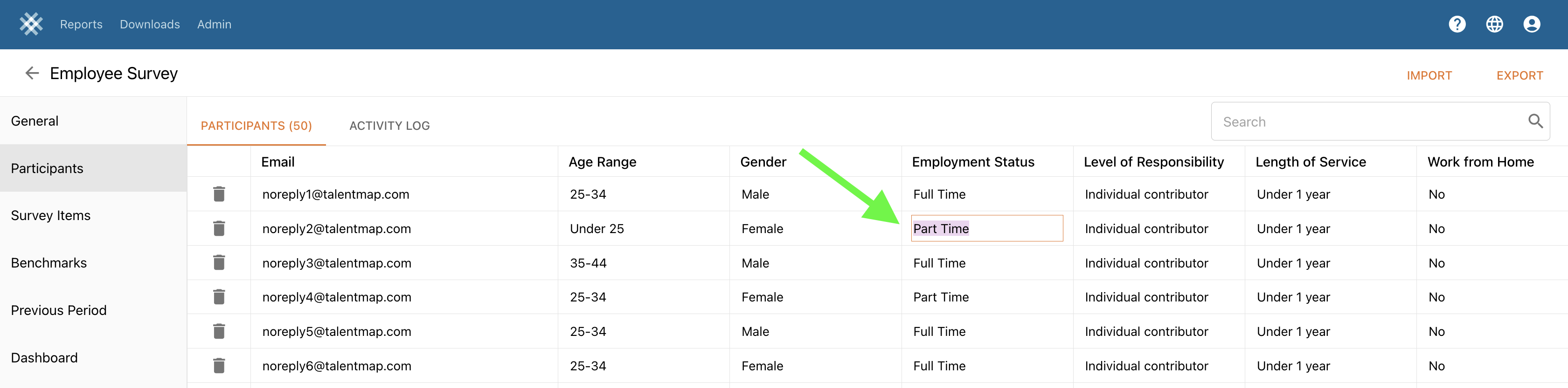 1. **Admin** > **Surveys** > click on the **Survey Title** > **Participants**&#x20;